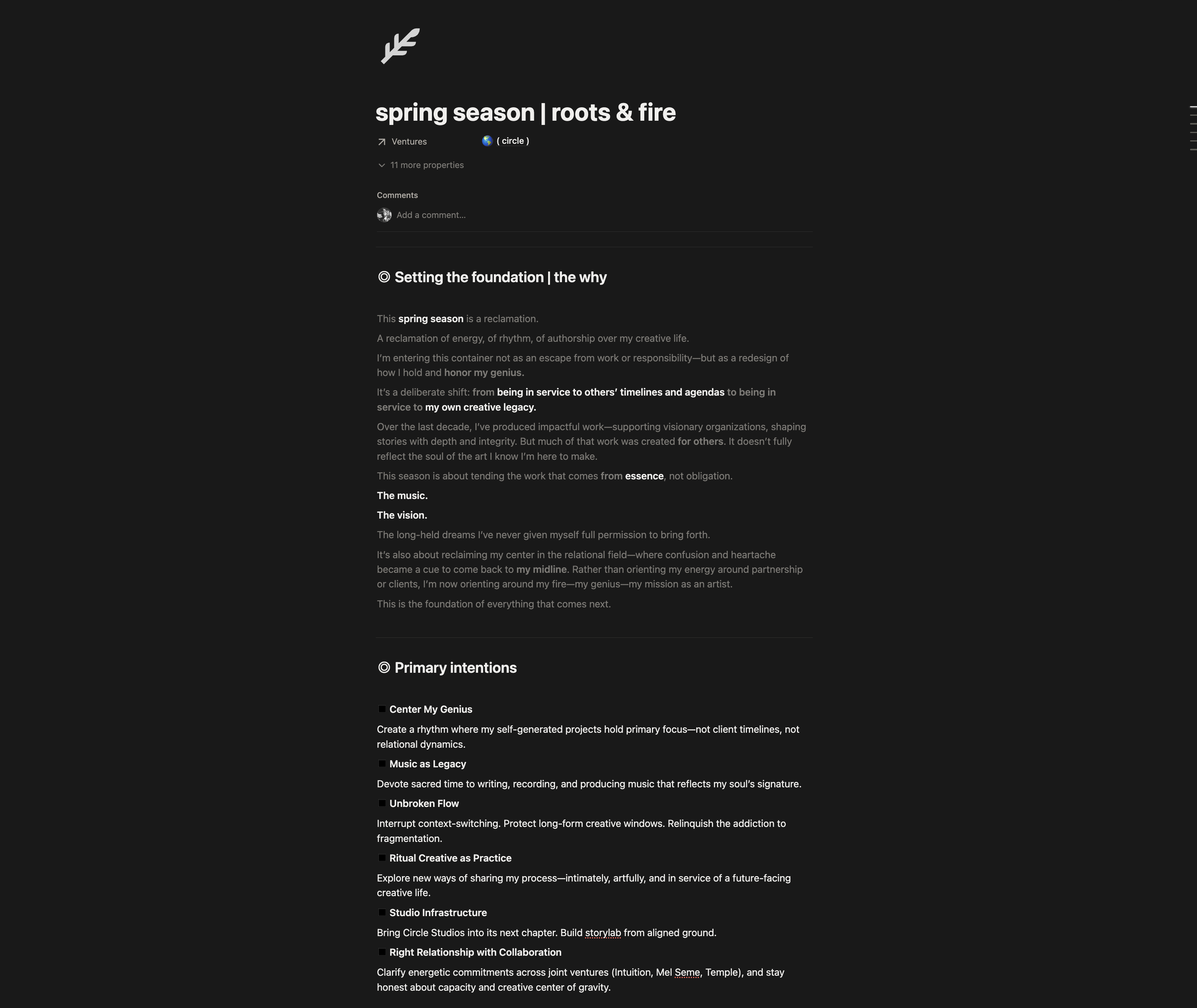 Each season doc includes: the thematic essence, focus areas, protected rhythms, what success looks like, edges I’m working with, support structures I’m building, and truths to keep close.