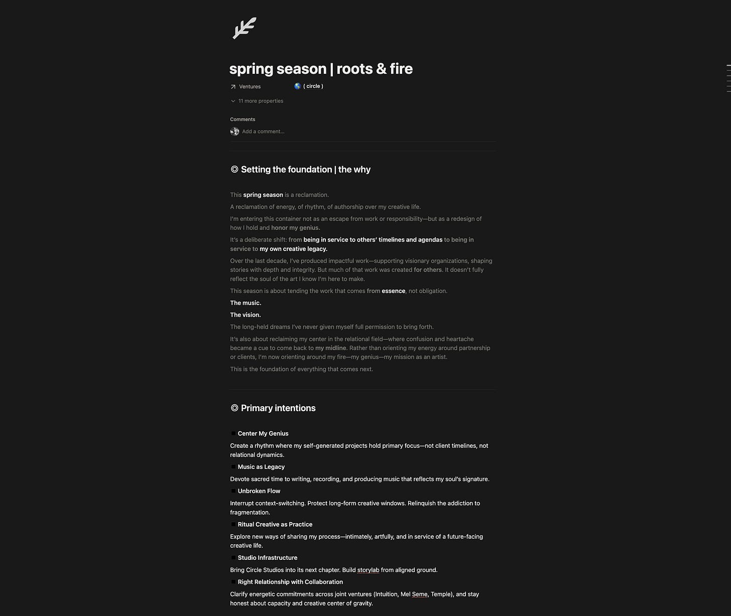 Then I refine it in my own voice. Make it real. Put it in my calendar. Share it with my partner and collaborators so they know what I’m holding.